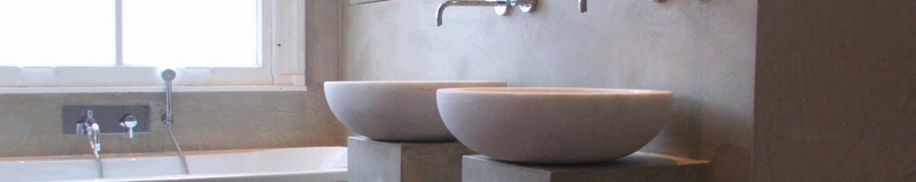 Badkamerwanden, wastafelunits en aanrechtbladen kunnen decoratief worden afgewerkt met een waterdichte, gladde en harde gestukadoorde pleister. De mogelijkheden om ondergronden en oppervlakken in welke vorm, kleur of toepassingswijze technisch en esthetisch met dit type stucmaterialen af te werken, zijn vrijwel onuitputtelijk.