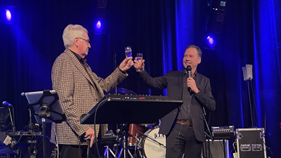 Daaropvolgend bracht John Kerstens samen met Erevoorzitter Jan van de Kant een toost uit op de toekomst van NOA. Jan stond aan de wieg van NOA en was al lange tijd daarvoor voorvechter, kartrekker en motivator om als branche samen op te trekken. Dat zijn boodschap nog steeds beklijft, bleek wel uit het cadeau dat Stucgilde-voorzitter Loïs Vlasblom vervolgens namens alle hoofdsectoren en sectorverenigingen aanbod aan de voorzitter(s) van NOA: een ontwerp voor een tastbare wanddecoratie/werkstuk in het pand van NOA, waaruit het samen-gevoel ook zal blijken. “Want zonder leden is er geen NOA.”