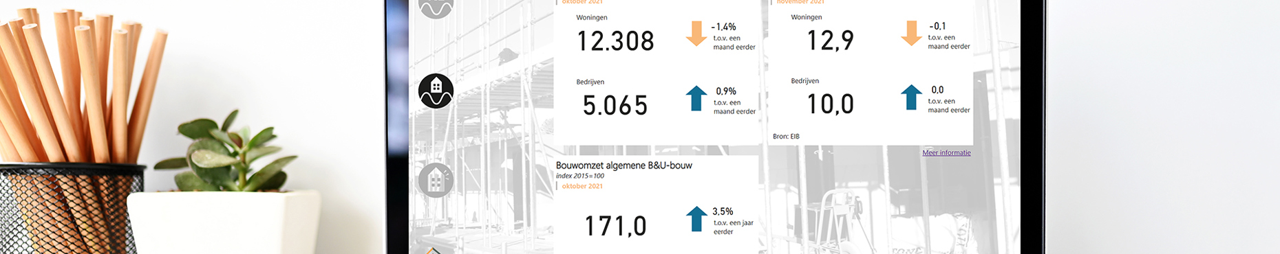 Om leden zicht te bieden op de voornaamste kansen en bedreigingen in de afbouwsectoren, worden er verspreid over het jaar kernontwikkelingen binnen de verschillende bouwsegmenten inzichtelijk gemaakt. Het online dashboard biedt 24/7 de meest actuele conjunctuurcijfers over het BNP, vertrouwensindicatoren, prijzen en vacatures. Uitgesplitst naar sector toont het dashboard ook de bouwomzet, vergunningen en werkvoorraad.