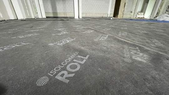 Wanneer een nieuwe zwevende dekvloer wordt gemaakt, is Isolgomma Grei of Roll het beste antwoord. Deze slechts 5-7 mm dikke isolatierol biedt betrouwbare akoestische isolatie, die voldoet aan alle gestelde eisen uit het PVE voor supermarktvloeren op het gebied van akoestiek en drukbelasting.