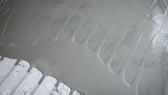 De cementgebonden mortel FLM230 is bedoeld voor ingefreesde sleuven in zandcement en voor het fixeren van elektrische verwarmingsmatten. De hoog visceuze, cementgebonden A+B-mortel vult sleuven volledig, voorkomt opdrijven en hecht sterk op veelvoorkomende ondergronden. De hoge druksterkte zorgt voor stabiliteit en een goede basis voor verdere afwerking. Meer info.