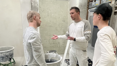 “Iedere maandag werk ik bij de opleidingslocatie in Assen. Daar ontmoet ik collega’s van het samenwerkingsverband NOA Opleidingsbedrijf Afbouw voor overleg. Ook de docent Nederlands & burgerschap die mijn leerlingen in Purmerend regelmatig lesgeeft, zie ik meestal in Assen. Ik kom er graag. Heb er zelf ook mijn stukadoorsopleiding gevolgd. Hoewel ik al op jonge leeftijd het vak ben ingerold vanwege een bijbaantje, was het geen uitgemaakte zaak dat ik stukadoor zou worden. Ik heb eerst een tijdje fysiotherapie gestudeerd en een sportopleiding gedaan. Naast de opleiding werkte ik als stukadoor. En dat vond ik het mooiste wat er was. Vanwege de sfeer op de bouw en de mooie klussen. Vanwege de crisis wilde geen leerbedrijf me in dienst nemen, waardoor ik in dienst was van NOA Opleidingsbedrijf. Dat heeft er echter voor gezorgd dat ik op heel veel verschillende werken en bij verschillende bedrijven heb mogen werken. Een ontzettend goede leerschool. “Toen ik een paar jaar lang vijf dagen per week aan het werk was als stukadoor, vroeg ik me af: ‘is dit het nou?’. Ik miste uitdaging, niet qua fysiek werk maar vooral op mentaal vlak. Ik heb even getwijfeld of ik de opleiding tot restauratiestukadoor zou gaan doen, maar had nooit de ambitie om voor mezelf te beginnen. Daarom heb ik gebeld met de opleiding of ik eventueel een dag in de week praktijkdocent in Assen kon worden. Dat kon en na een tijdje meedraaien in de praktijk kwam de vraag vanuit het opleidingsbedrijf of ik niet fulltime docent wilde worden. Toen ben ik de vierjarige opleiding voor Leraar Technisch Beroepsonderwijs gaan doen. Daarmee kan ik in feite in de hele bouwkolom lesgeven.”