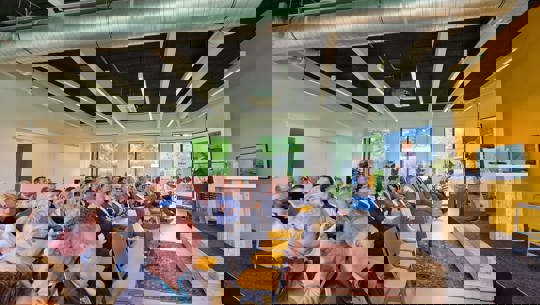 Woensdag begint deze week met een briefing voor een groot internationaal project. "We bespreken een onderzoek dat in vijftien Europese landen wordt uitgevoerd," zegt Michel. Samen met zijn team bespreekt hij de planning en de vereisten voor het voorstel dat zij moeten indienen. Vervolgens heeft hij een gesprek met een Estlandse partner over een aankomende studiereis. "Estland is interessant vanwege de expertise in houtbouw. Deze studiereizen bieden Nederlandse bedrijven de kans om kennis uit te wisselen en nieuwe samenwerkingsmogelijkheden te verkennen. Later op de dag bespreek ik de voorbereidingen voor de kwartaalbijeenkomst van Buildsight met een collega. Buildsight organiseert namelijk vier keer per jaar een kwartaalbijeenkomst om haar relaties en abonnementhouders bij te praten over de laatste marktontwikkelingen. Deze bijeenkomsten vormen een platform voor discussie en netwerken. E.n keer per jaar, in september, organiseren we een grotere bijeenkomst met gastsprekers, waarbij we dieper ingaan op een actueel thema. Deze grotere bijeenkomst - de Buildsightdag - trekt doorgaans tussen de 120 en 130 deelnemers en wordt gehouden in Den Bosch. Het thema van dit jaar betreft de planologische uitdagingen in Nederland, en we hebben sprekers van onder andere het Planbureau voor de Leefomgeving (PBL) uitgenodigd om hun inzichten te delen."