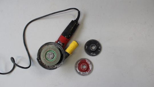 “Kleine freesjes, grote frezen… ook die heb ik in verschillende soorten en maten”, vervolgt Jilles. “Soms kom je nog iets tegen dat uit de ondervloer moet worden verwijderd. Of om kleine gaatjes uit te kunnen frezen om te kunnen vullen voor een goede verdichting.”