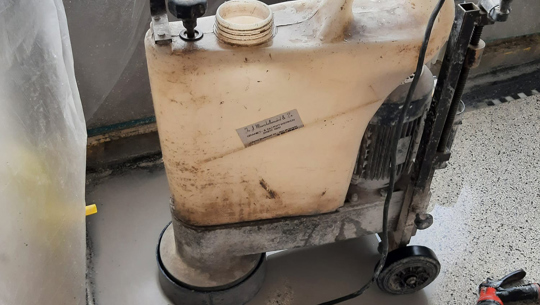 Een betonslijper voor zwaar gebruik om tot 3 cm diep te kunnen zagen. Mét stofafzuiging natuurlijk. “En als gecertificeerd keurmeester kan ik jaarlijks mijn eigen apparatuur keuren”, legt Jilles uit. “Ik vind het belangrijk om veilig te werken. Daarom heb ik alweer heel wat jaren geleden via de NOA de keurmeester cursus gevolgd, zodat ik conform NEN mijn eigen elektrische arbeidsmiddelen mag keuren. Dan hoef ik ze niet weg te brengen, of te missen wanneer ze gekeurd moeten worden.”