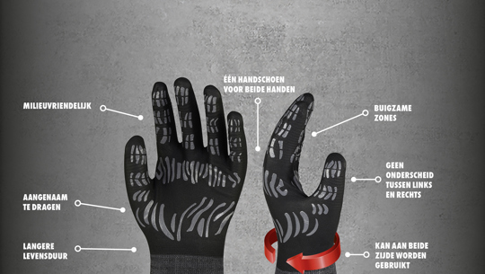 Hoe vaak gebeurt het je dat je één handschoen kwijt bent? Of dat de ene versleten is, maar de andere eigenlijk nog wel een poos mee kan? Begunstigend lid Würth heeft daar nu een duurzame oplossing voor. Ze hebben een montagehandschoen ontworpen, die zowel aan je linker- als je rechterhand past. Hierdoor hoef je nooit meer een handschoen weg te gooien als je maar één handschoen draagt, of als je er een verliest.