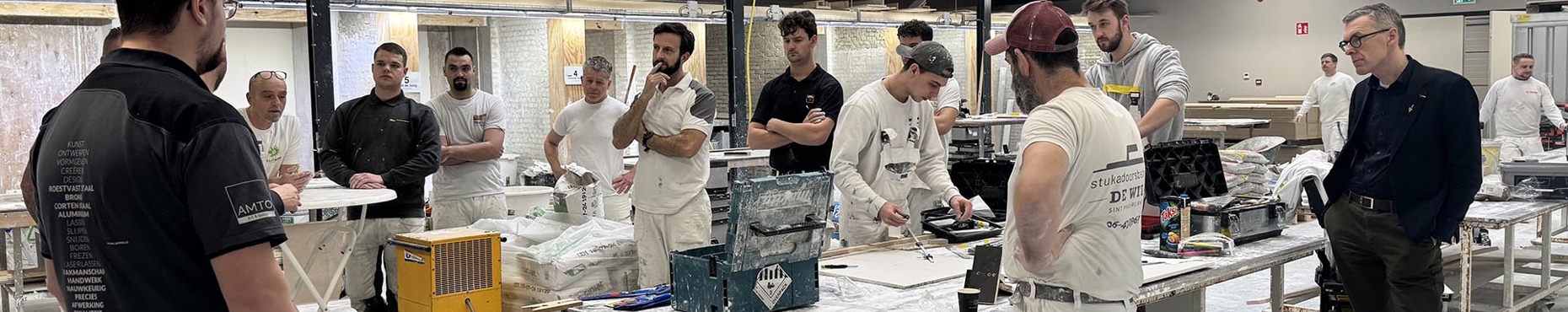 De deelnemers komen uit heel Nederland en werken bij zeer verschillende afbouw- en stukadoorsbedrijven. Jesse Bakker, Mitchel Berentse, Bryan Blom, Eurvin Dickens, Ralph van der Ende, Dylan Fernhout, Dean van Gils, Dennis Graafland, Jogan Jevtjajev, Daan van Kasteren, Abe van den Oever, Mano Smit, Sander Broers en Leendert Jan de Wit: stuk voor stuk willen ze nog meer kennis en kunde vergaren om zich over drie jaar Meester Stukadoor te mogen noemen en zich aan te kunnen sluiten bij Het Neerlandsch Stucgilde, de vereniging van restauratie stukadoorsbedrijven.