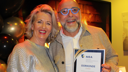 Voor al die werkzaamheden en inzet heeft het hoofdbestuur besloten Bart Briels te benoemen als erelid van NOA. John Kerstens speldde hem daarvoor het Erelidmaatschap op. Zijn vrouw Nancy werd ook bedankt, want zij heeft haar man gedurende heel veel jaar vaak moeten missen. “Al die bestuurslidmaatschappen zijn dan wel vrijwillig, maar er gaat toch heel wat tijd in zitten om dit naast het runnen van je onderneming allemaal te doen.”