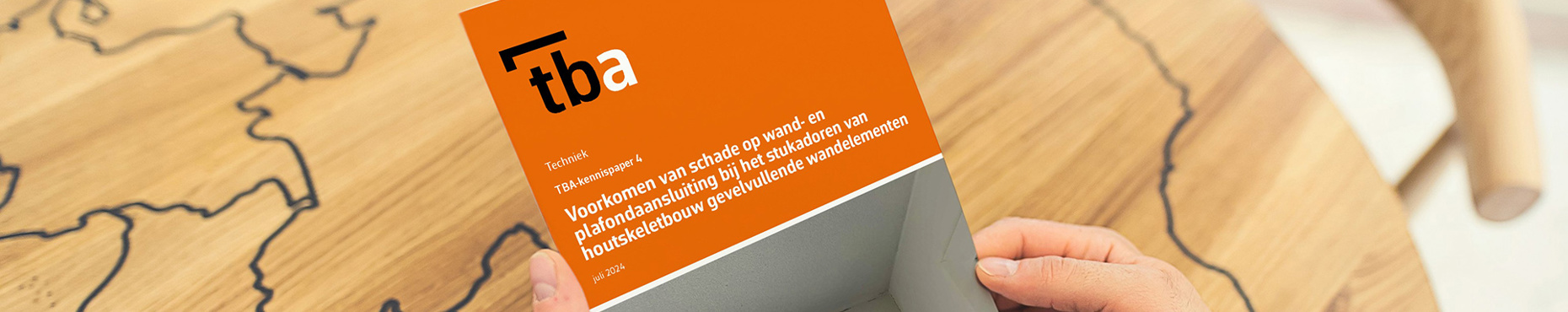 Om deze problemen te voorkomen, is de TBA-kennispaper 4, “Voorkomen van schade op wand- en plafondaansluiting bij het stukadoren van houtskeletbouw gevelvullende wandelementen”, ontwikkeld. In deze kennispaper gaan de onafhankelijk technisch adviseurs in op het schadebeeld, het afwerken/bewerken van houtskeletbouwelementen, de oorzaken van de schade, de initiële factoren die de schade beïnvloeden, het wel of niet toepassen van wapeningsgaas en aanbevelingen voor nieuwe projecten.