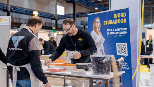 Exposanten hadden alles in het werk gesteld om afbouwprofessionals de laatste stand der techniek te bieden. Fraaie stands, ludieke acties, demonstraties én leuke giveaways maakten het voor de bezoekers interessant om rustig over de beursvloer te dwalen en overal een gesprekje aan te knopen. Net als twee jaar geleden hadden de Stucgildeleden ook weer veel aanloop op hun Stuc Demoplein. Bezoekers wilden de fijne kneepjes van het vak afkijken en vaak zelf ook even de handen uit de mouwen steken.