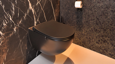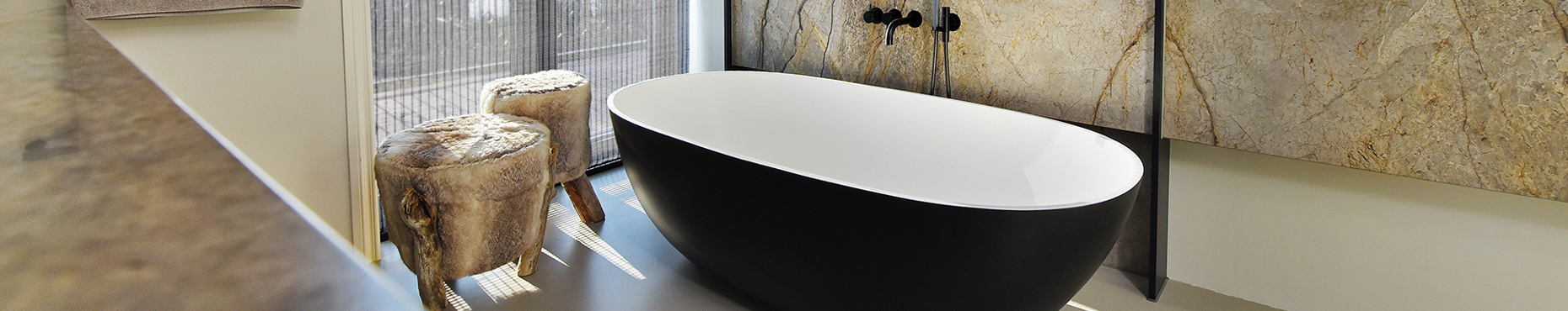 Aan elke ruimte werd tijdens de renovatie aandacht besteed. Het kleinste kamertje kreeg een schitterende achterwand van Café Amaro. De donkere kleur van dit marmer geeft de toiletruimte een elegante uitstraling. “We gaan van tevoren altijd alles zelf ter plaatse inmeten”, licht Bob toe. “Dan kunnen we namelijk ook meteen beoordelen of we grote platen marmer de ruimte in krijgen. Klantwensen worden eigenlijk steeds immenser; mensen willen bijvoorbeeld dat een natuursteenwand slechts uit één deel bestaat. We moeten dan ook de constructie beoordelen.”
