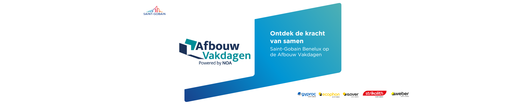 Op 29 & 30 oktober staat Saint-Gobain Benelux groots op Afbouw Vakdagen in Gorinchem. Voor het eerst bundelen de begunstigende leden Ecophon, Gyproc, Strikolith, Weber en Isover hun krachten op één stand - en dat wil je natuurlijk niet missen!